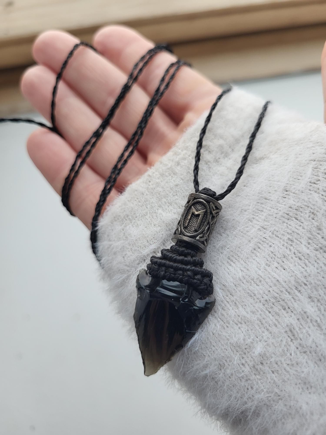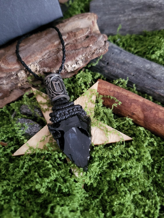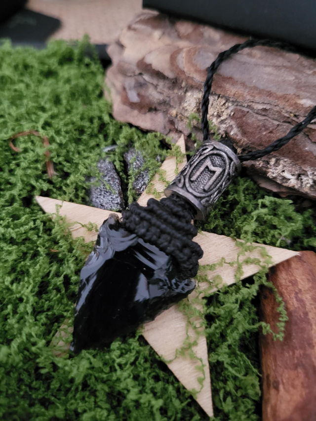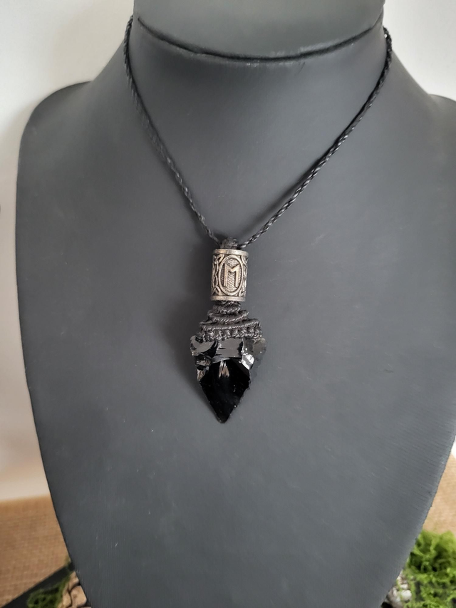 – Pendentif pointe de flèche en obsidienne noire
