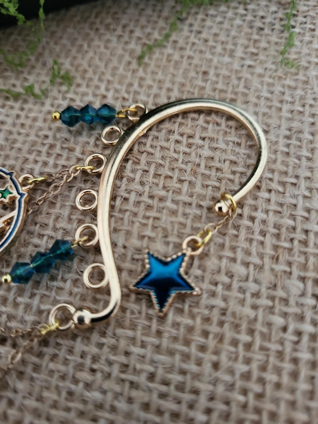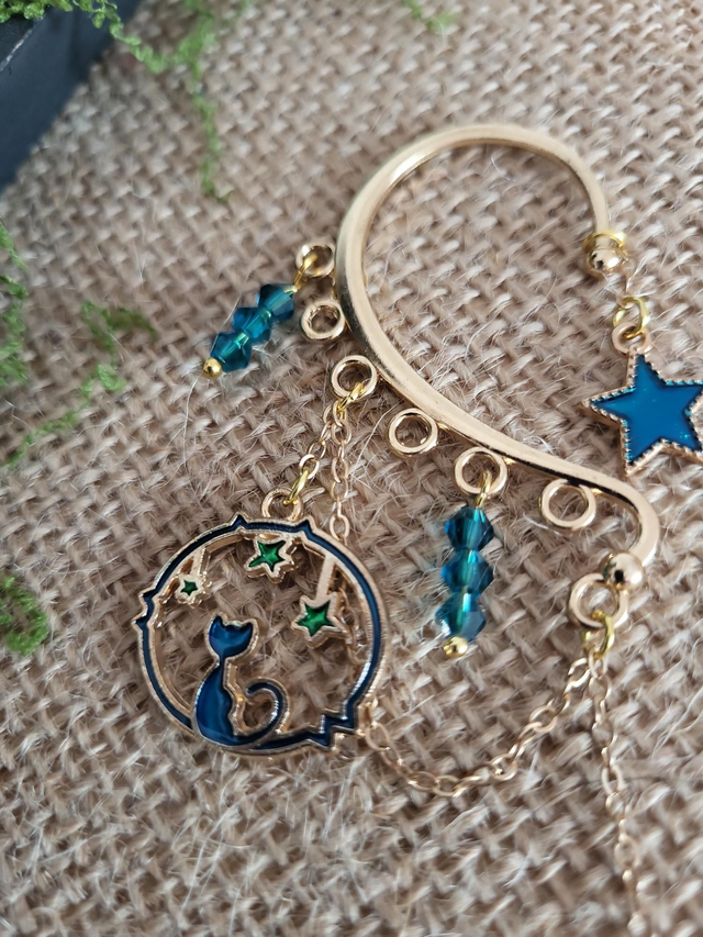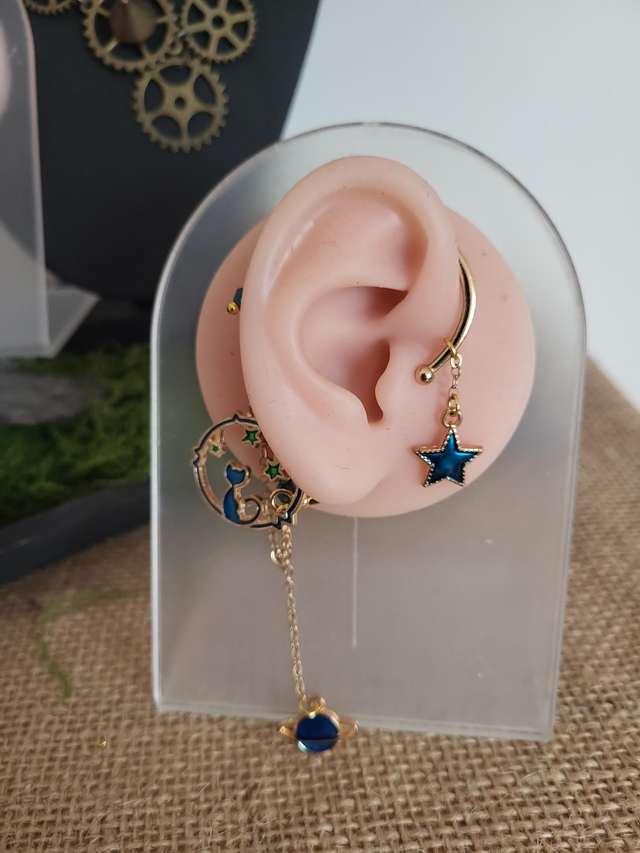 Cette oreille d’elfe a été pensée comme un bijou céleste, doux et mystérieux, inspiré par le ciel nocturne et les mondes invisibles.