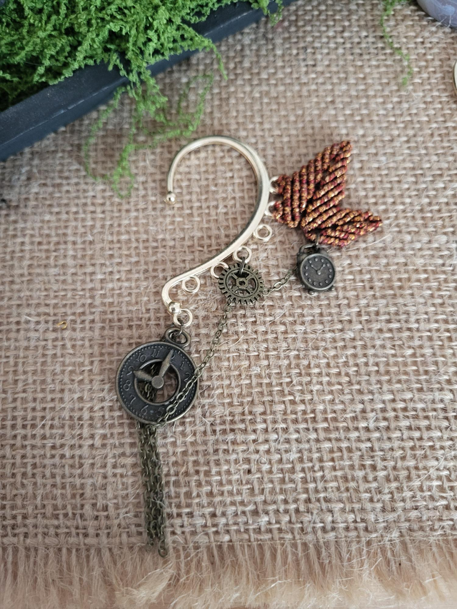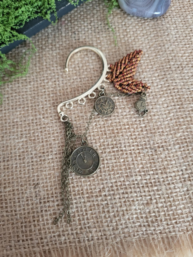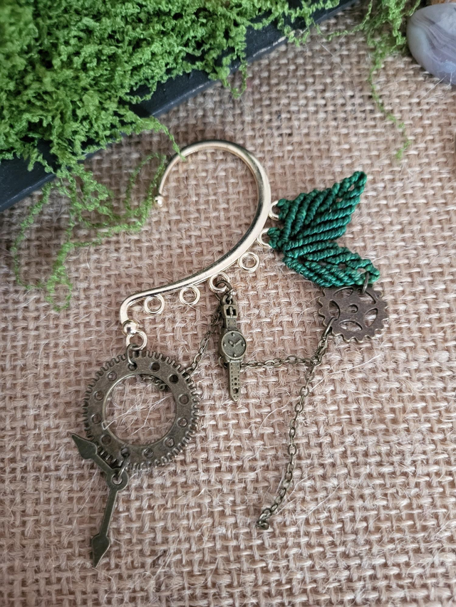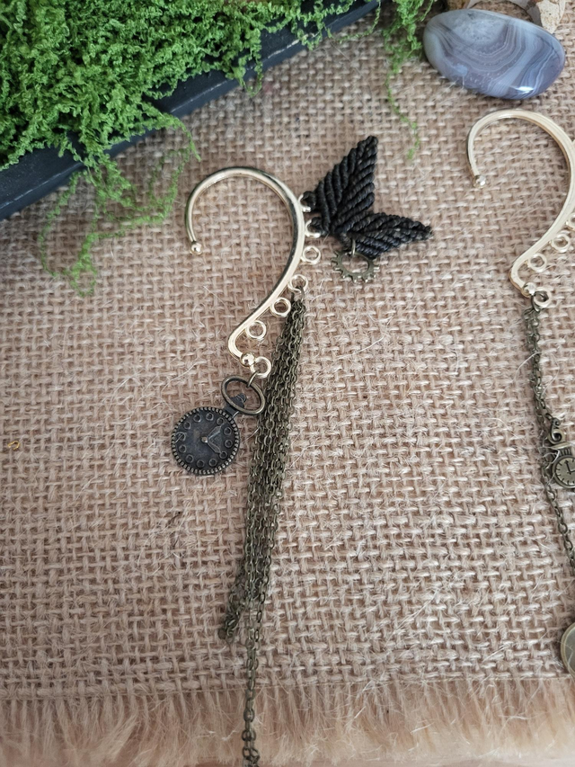 Paires d’oreilles d’elfes en macramé inspirées des univers steampunk et post-apocalyptiques.