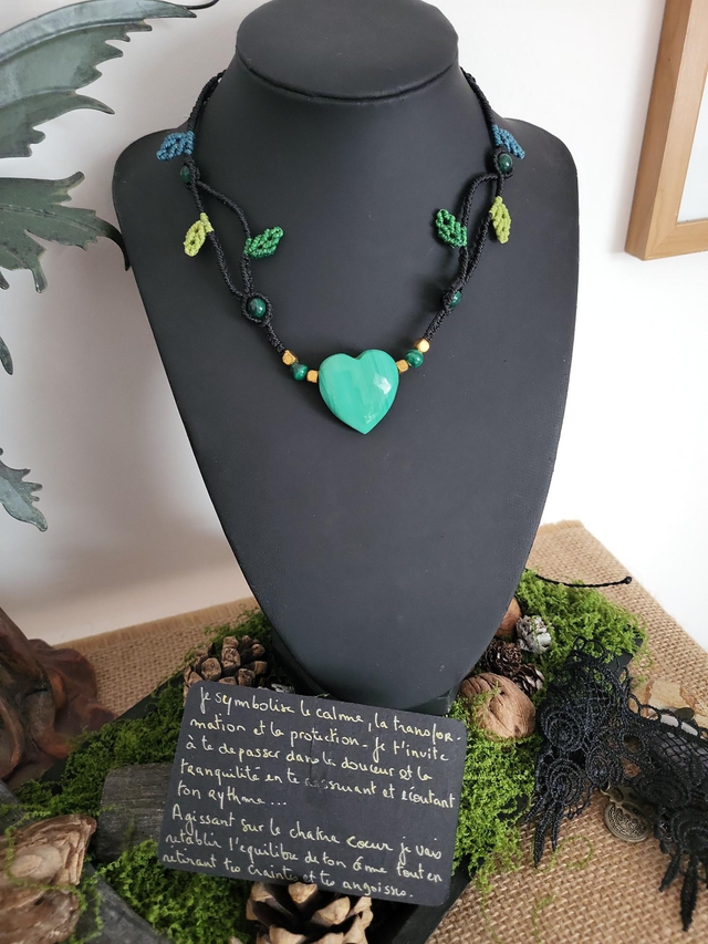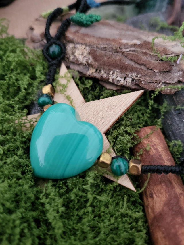 Talisman de douceur profonde et de reconstruction émotionnelle. Centré sur une malachite, pierre de transformation et de guérison du cœur, il accompagne les périodes de tristesse, de chagrin et de libération émotionnelle.